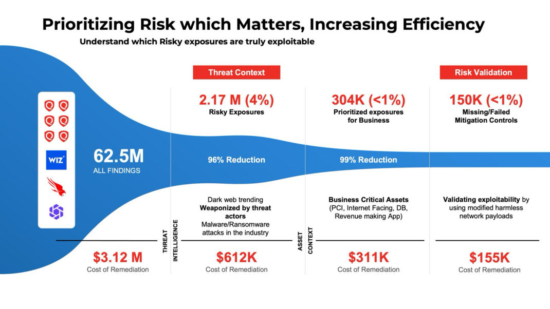 - 95% Reduction in Remediation Noise – Agent Val reduces the universe of findings teams need to act on. It narrows the focus from 62.5 million raw findings down to 150,000 confirmed exploitable exposures.