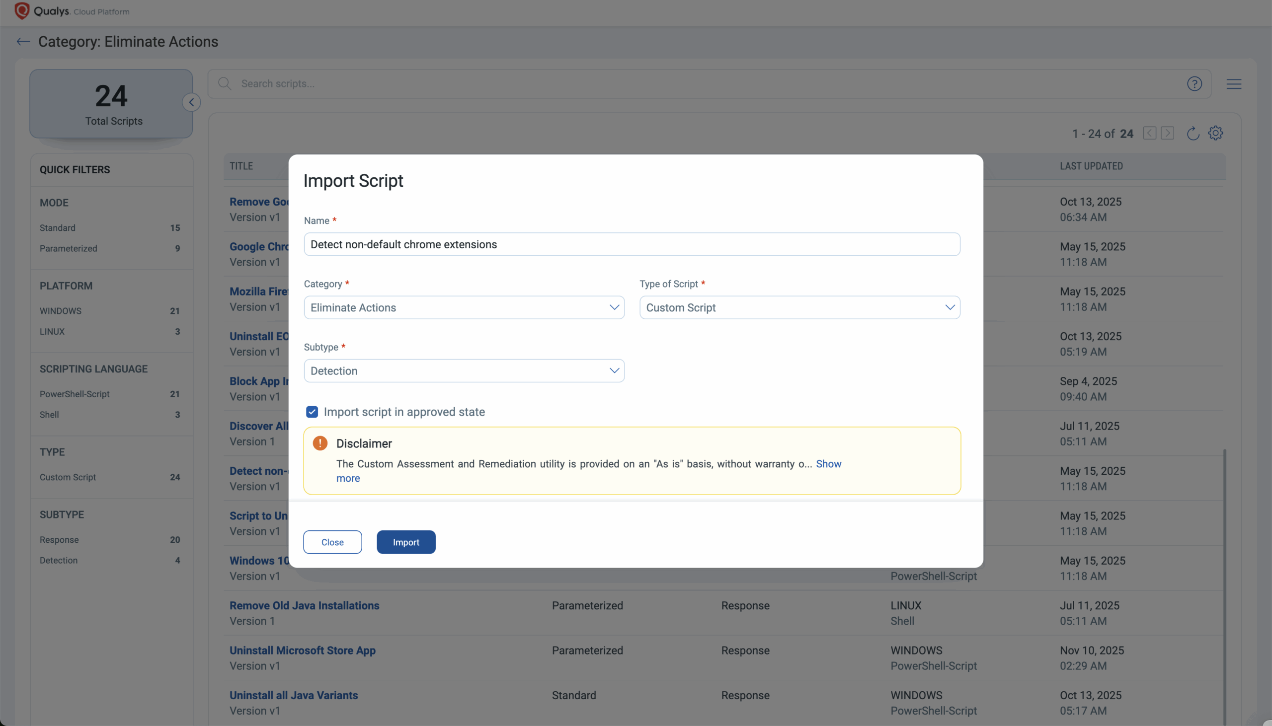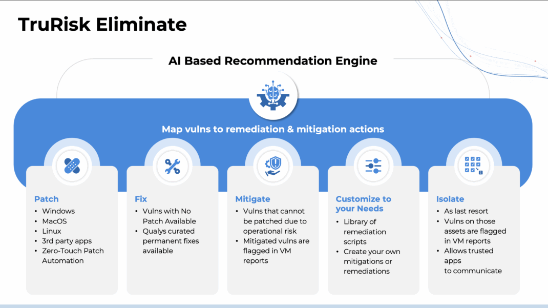 Qualys TruRisk Eliminate delivers this capability by identifying risky behaviors, prioritizing them based on real threat context, and blocking or removing malicious components before they can be exploited.