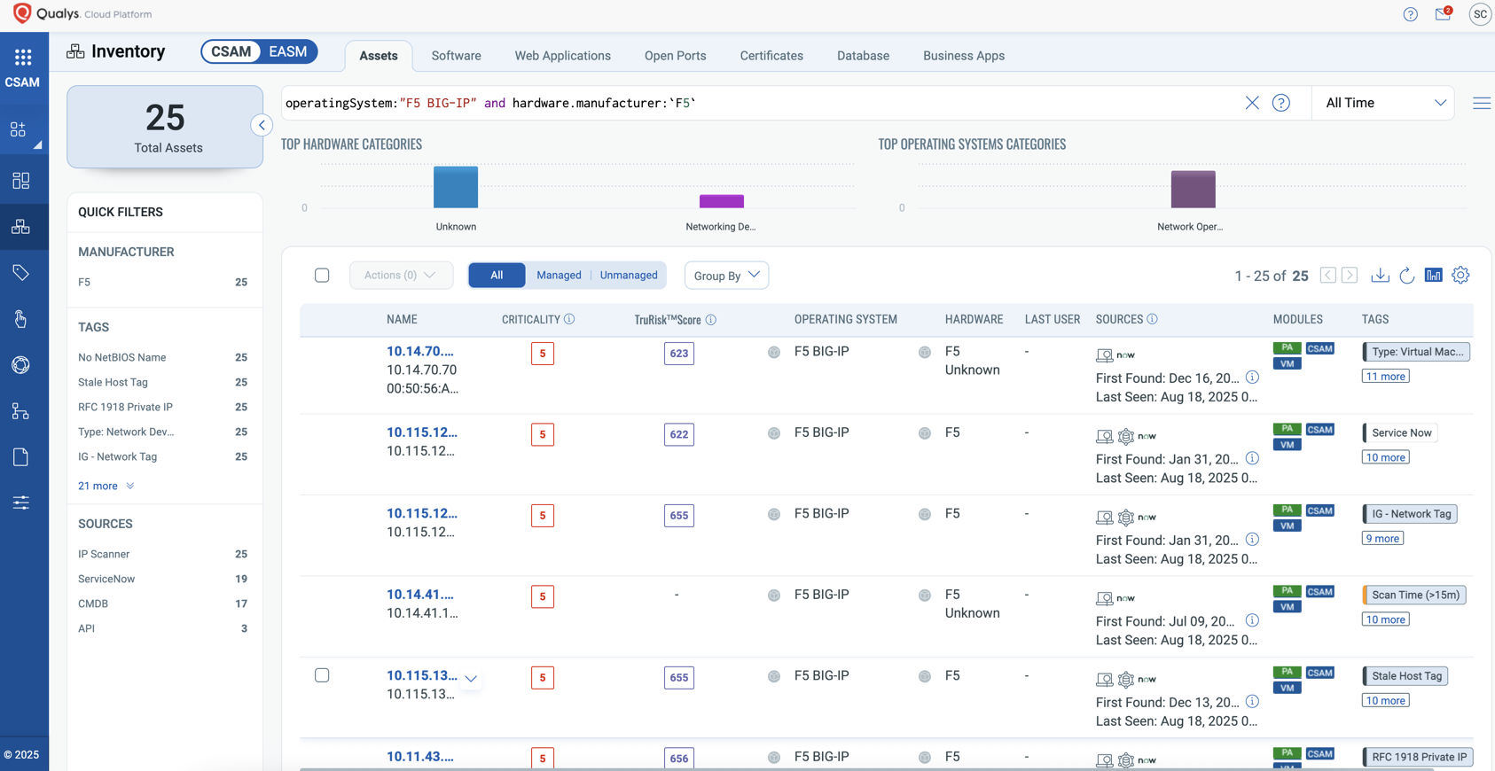 Discover F5 Assets Using Qualys CyberSecurity Asset Management (CSAM)