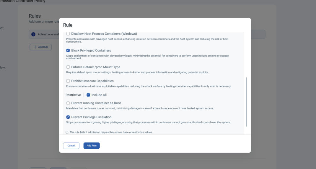 You can also leverage Qualys Admission Controller to prevent new containers in your Kubernetes clusters from performing a breakout with preventative and restrictive pre-deployment controls.
